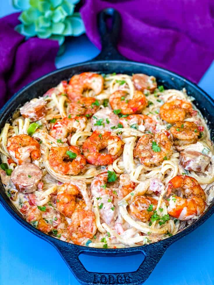 Cajun Bay Scallop & shrimp Saute, andoullie, roasted cherry tomatoes, spinach, cajun cream sauce